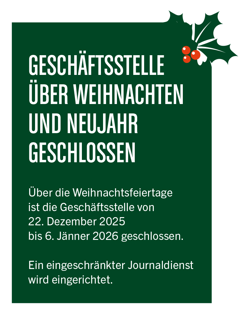 Geschäftsstelle geschlossen über Weihnachten und Neujahr geschlossen