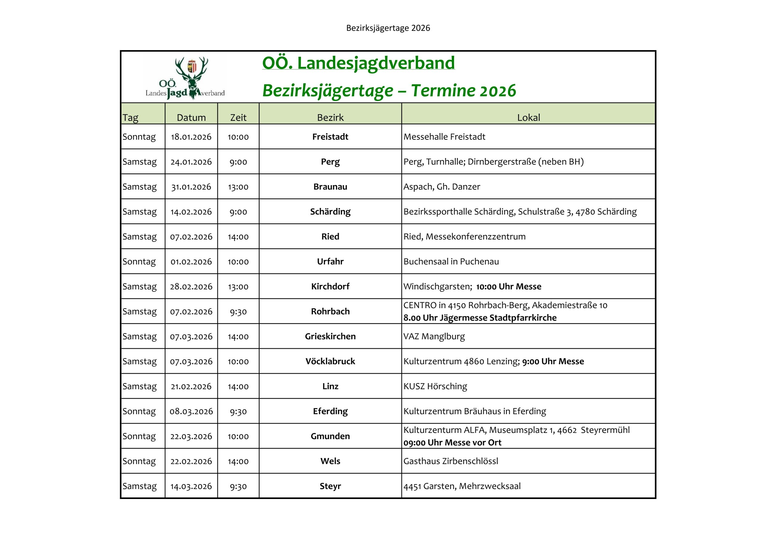 Bezirksjägertage 2026