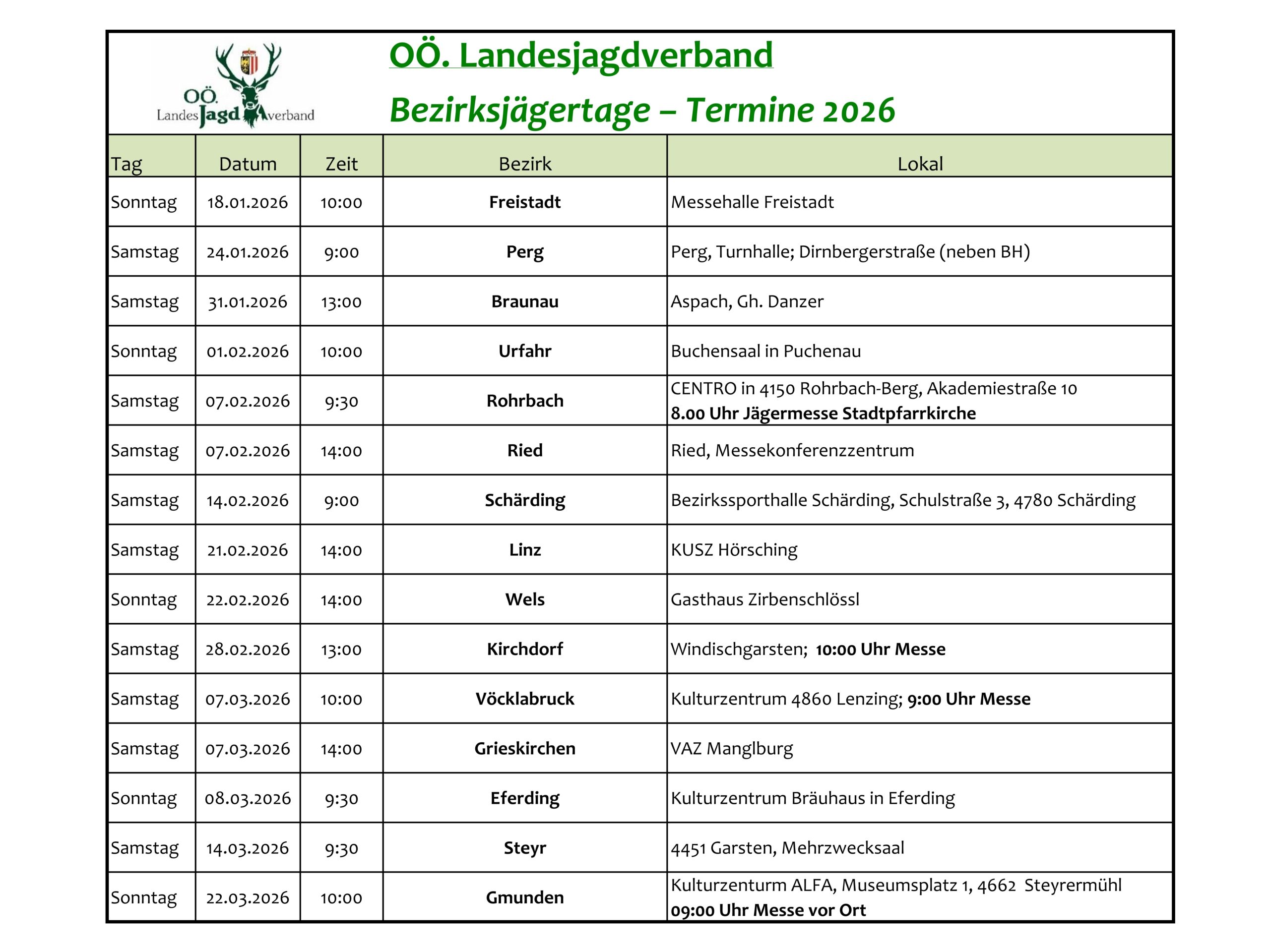 Hier finden Sie die Termine zu den Bezirksjägertagen 2026