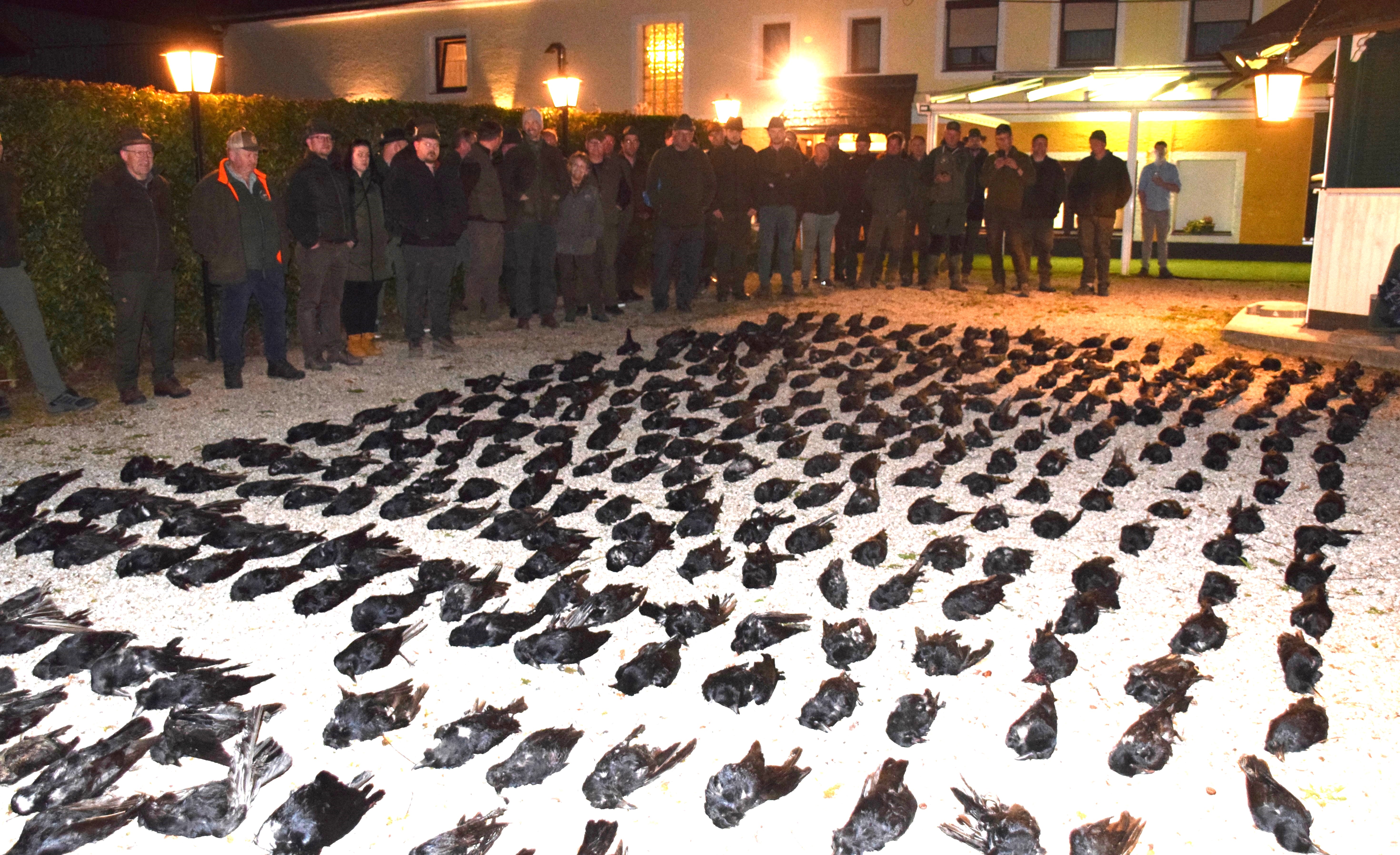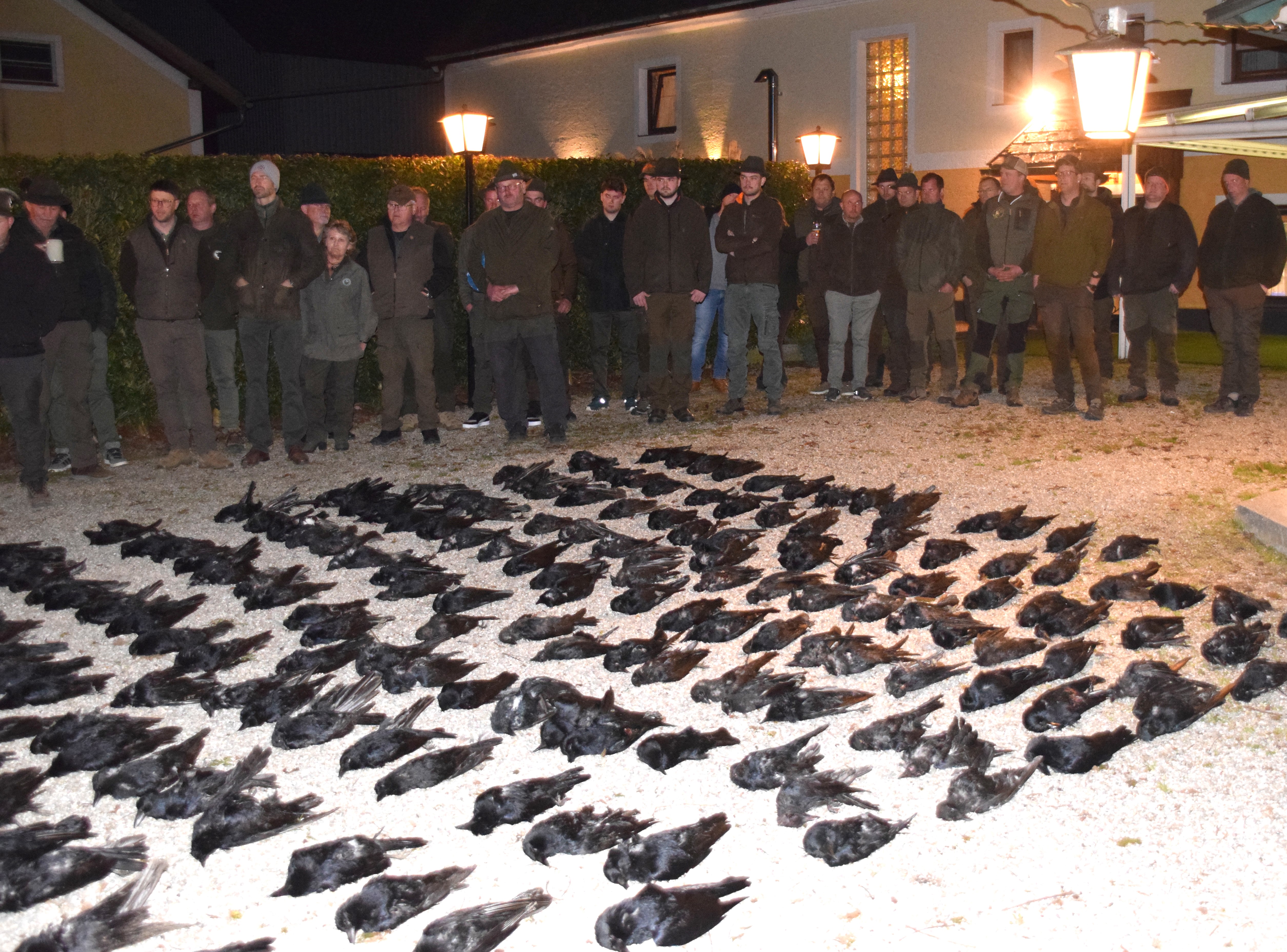17 Jagden legten die Krähen am Samstag, 28. März beim Scharinger Hof in Gildenberg vor und die Strecke mit 367 Krähen konnte sich wahrlich sehen lassen. „Das ist nicht selbstverständlich, noch in dunklen Morgenstunden alles vorbereiten, lange Zeit ruhig sein und warten und dann soll auch gut geschossen werden“ – Krähenjagen verlangt schon einiges ab, so Roland Pommer. Er wünscht sich vor allem, dass sich die Teilnahme noch über viele Jagden im Bezirk erweitert!