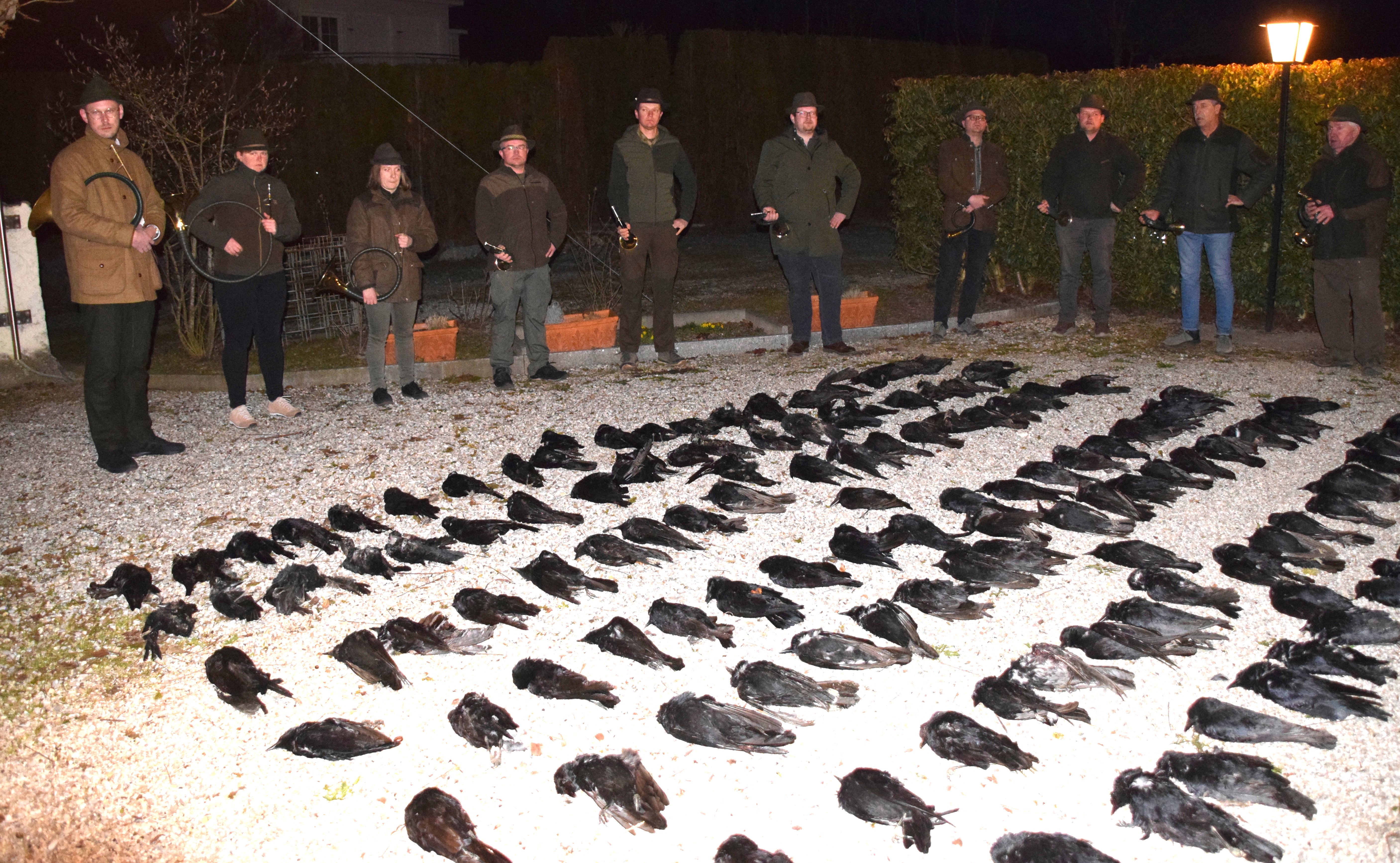 Die erfolgreiche Strecke wurde von den Gilgenberger Jagdhornbläsern würdig verblasen und BJM Johann Priemair würdigte das Engagement der Krähenjäger im Sinne des heimischen Niederwildes sowie für die Landwirtschaft.