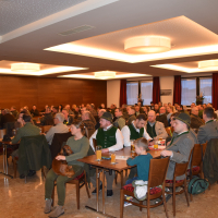 Nach dem Verblasen der gemeinsamen Krähenstrecke durch die Jagdhornbläsergruppe Schlossberg gab es im Gasthaus Stockinger in Kirchberg b.M. zwei interessante Vorträge für die über 100 anwesenden Jäger.