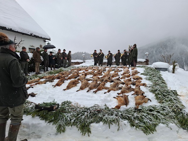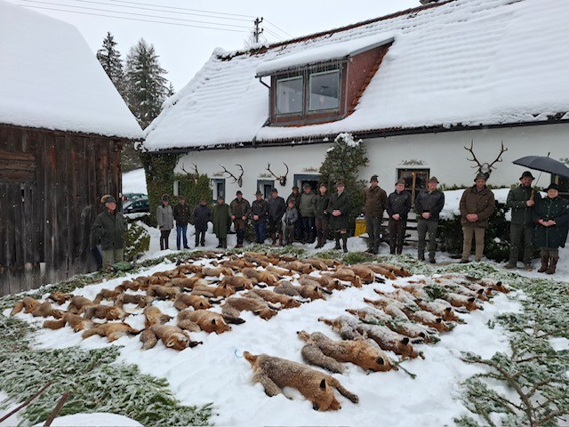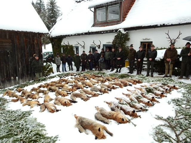 Im Rahmen der Raubwildjagd wurden insgesamt 52 Füchse, 5 Steinmarder und 3 Iltisse zur Strecke gelegt. 5 der erlegten Füchse von Sigi Erker konnten witterungsbedingt nicht rechtzeitig angeliefert werden.