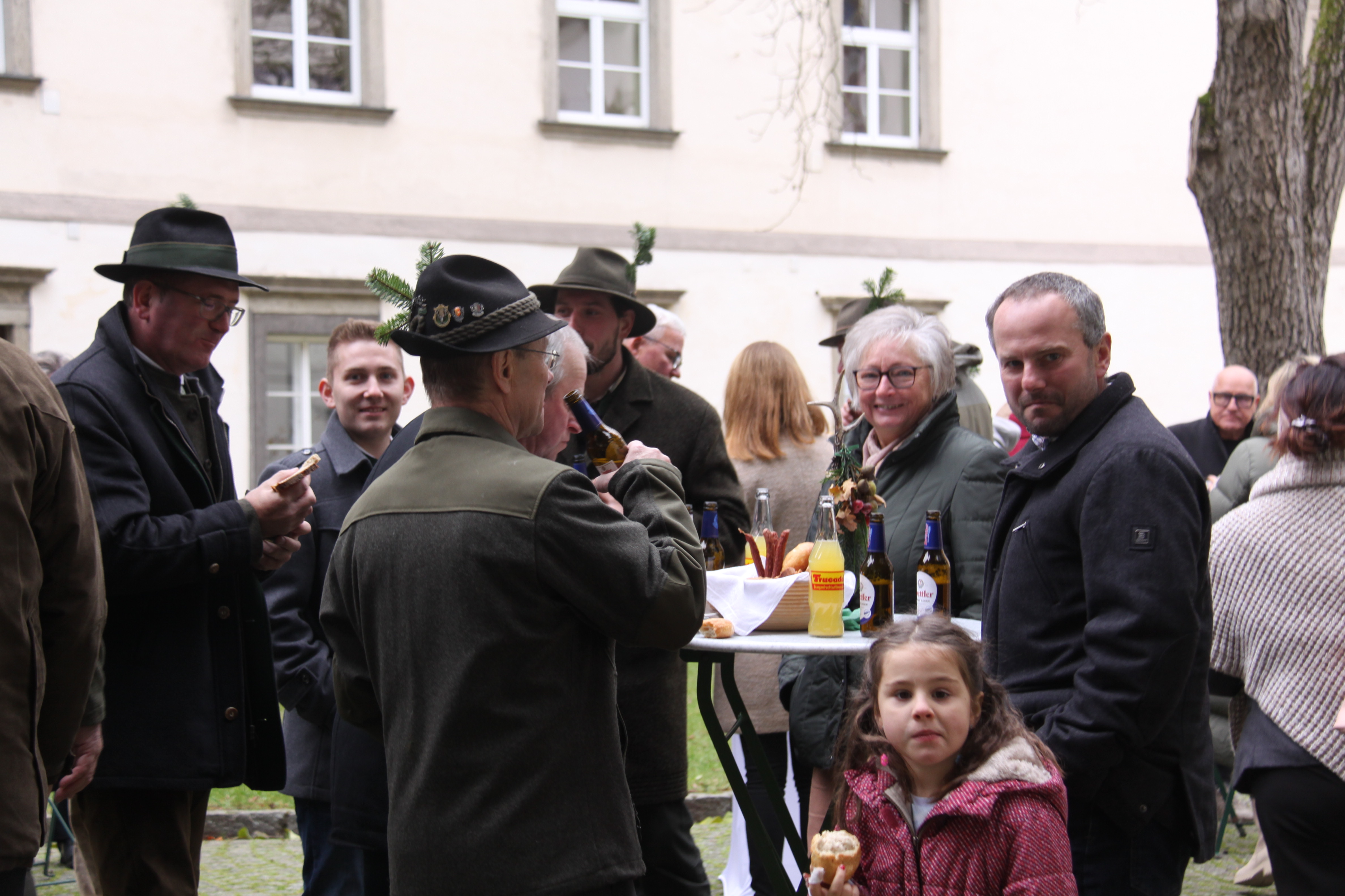 Nach der Messe lud die Jägerschaft Baumgartenberg zur Agape ein. Das Kloster vom Guten Hirten stellte dafür mit großer Gastfreundschaft seinen Innenhof und die eindrucksvollen Räumlichkeiten zur Verfügung. In geselliger Runde, begleitet von Gesang und Jagdhornklängen, genossen die Besucher ein köstliches Rehragout – ein stimmungsvoller Abschluss einer festlichen und würdevollen Feier.