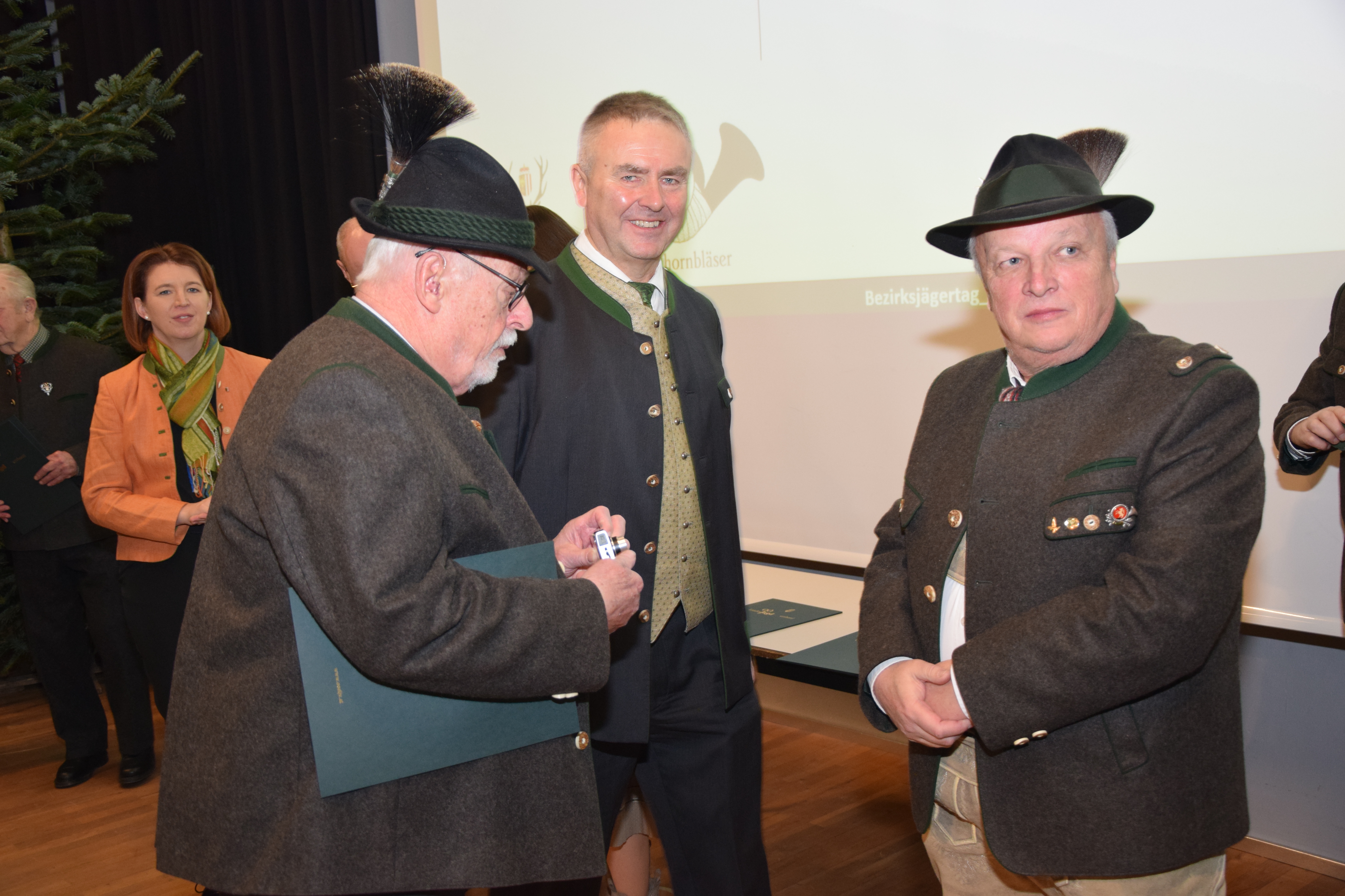 Seitens der Bezirkshauptmannschaft Perg konnten Bezirkshauptmann Ing. Mag. Werner Kreisl, Mag. Dominik Behr, Ing. Leopold Gruber und Ing. Stefan Wahl begrüßt werden. Auch Landesforstdirektor DI DI Gottfried Diwold beehrte den Bezirksjägertag mit seiner Anwesenheit. Als Vertreter der Bauernschaft nahmen die Vizepräsidentin der Landwirtschaftskammer Oberösterreich, Rosemarie Ferstl und BBK-Obmann Ing. Christian Lang teil.
