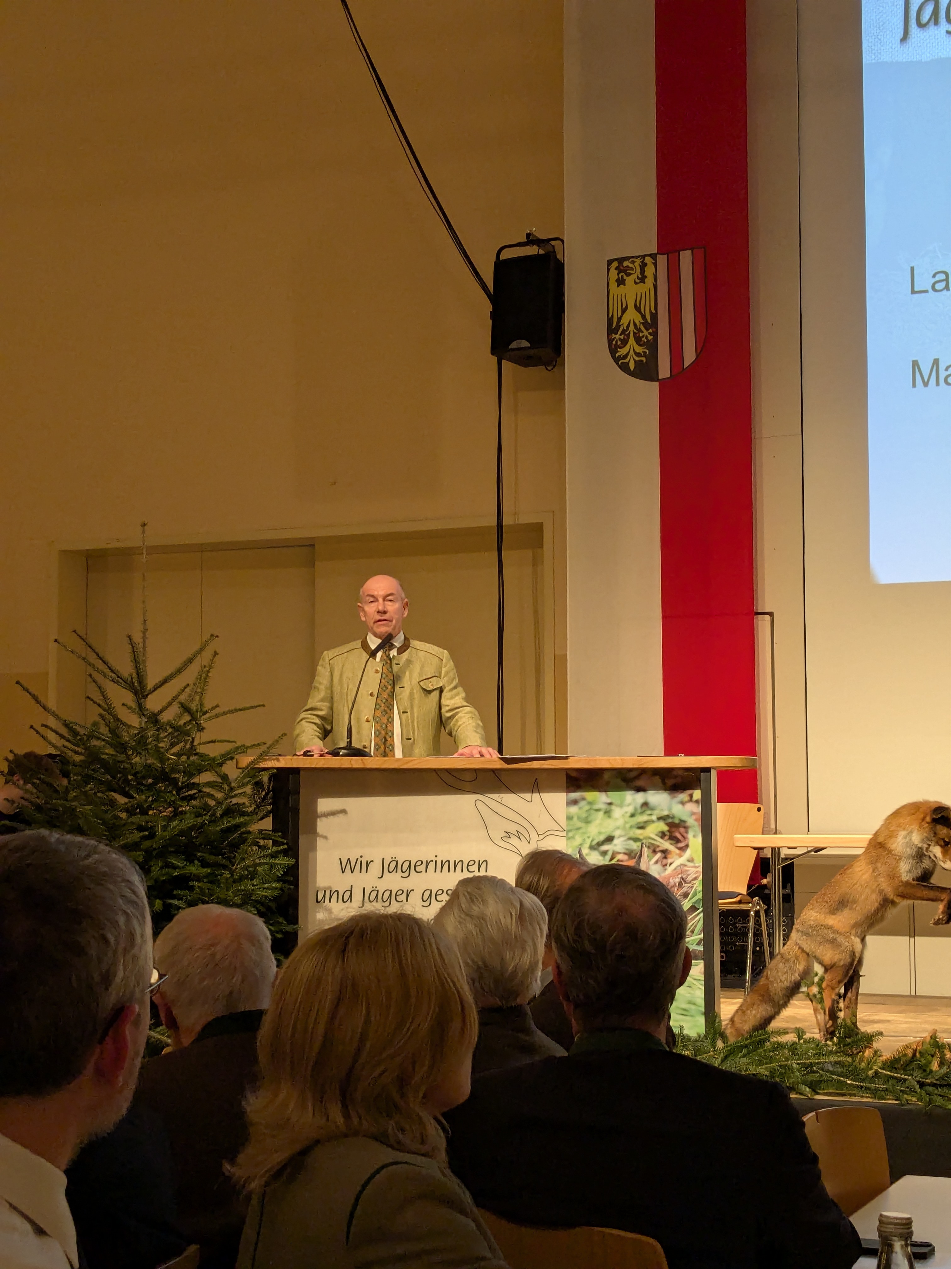 Bezirksjägermeister Andreas Gasselsberger betonte in seinen einleitenden Worten die besondere Verantwortung der Jagd zwischen Naturnutzung und Naturschutz sowie die Bedeutung von Respekt, Brauchtum und kameradschaftlichem Miteinander.