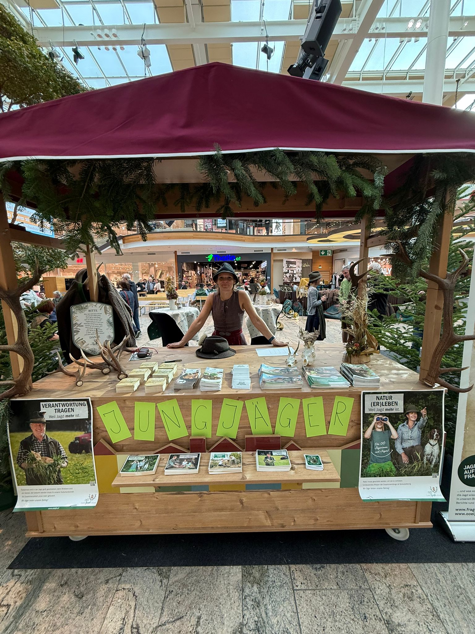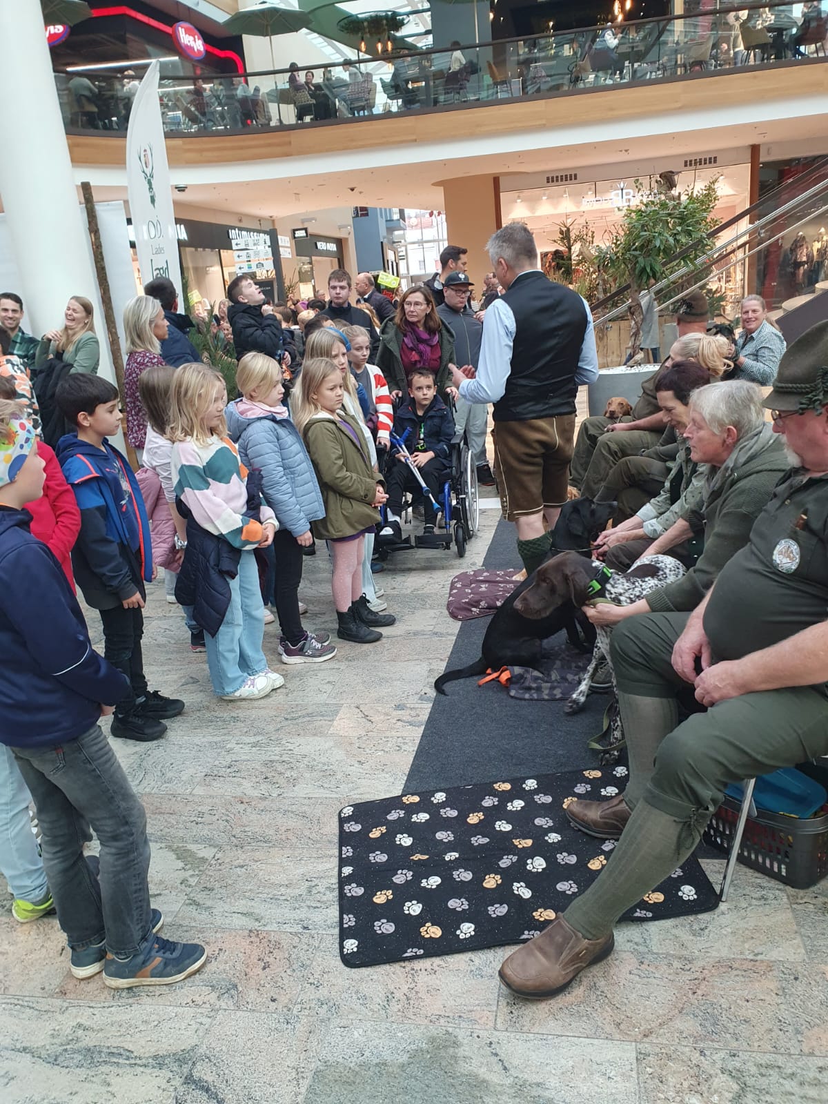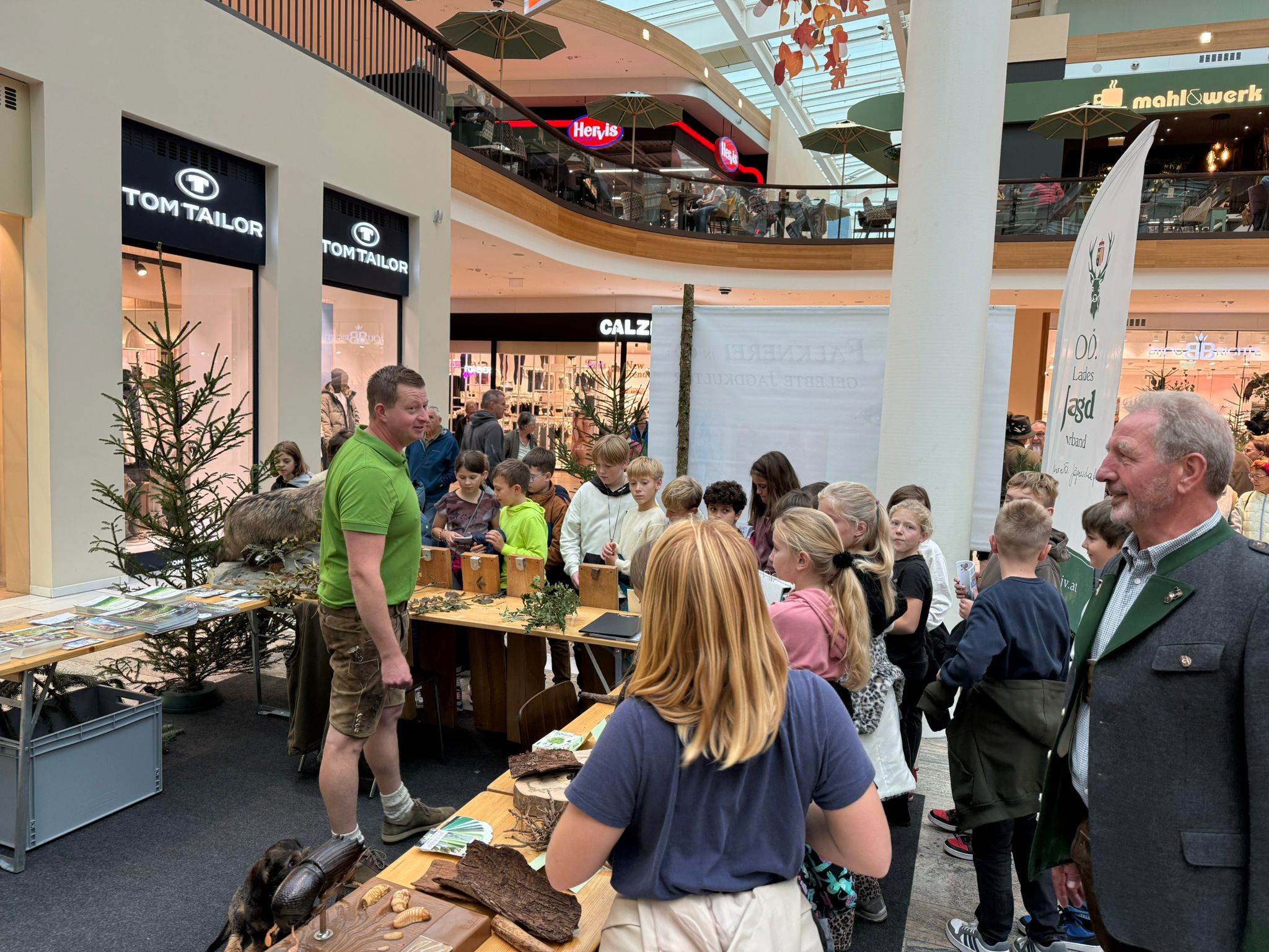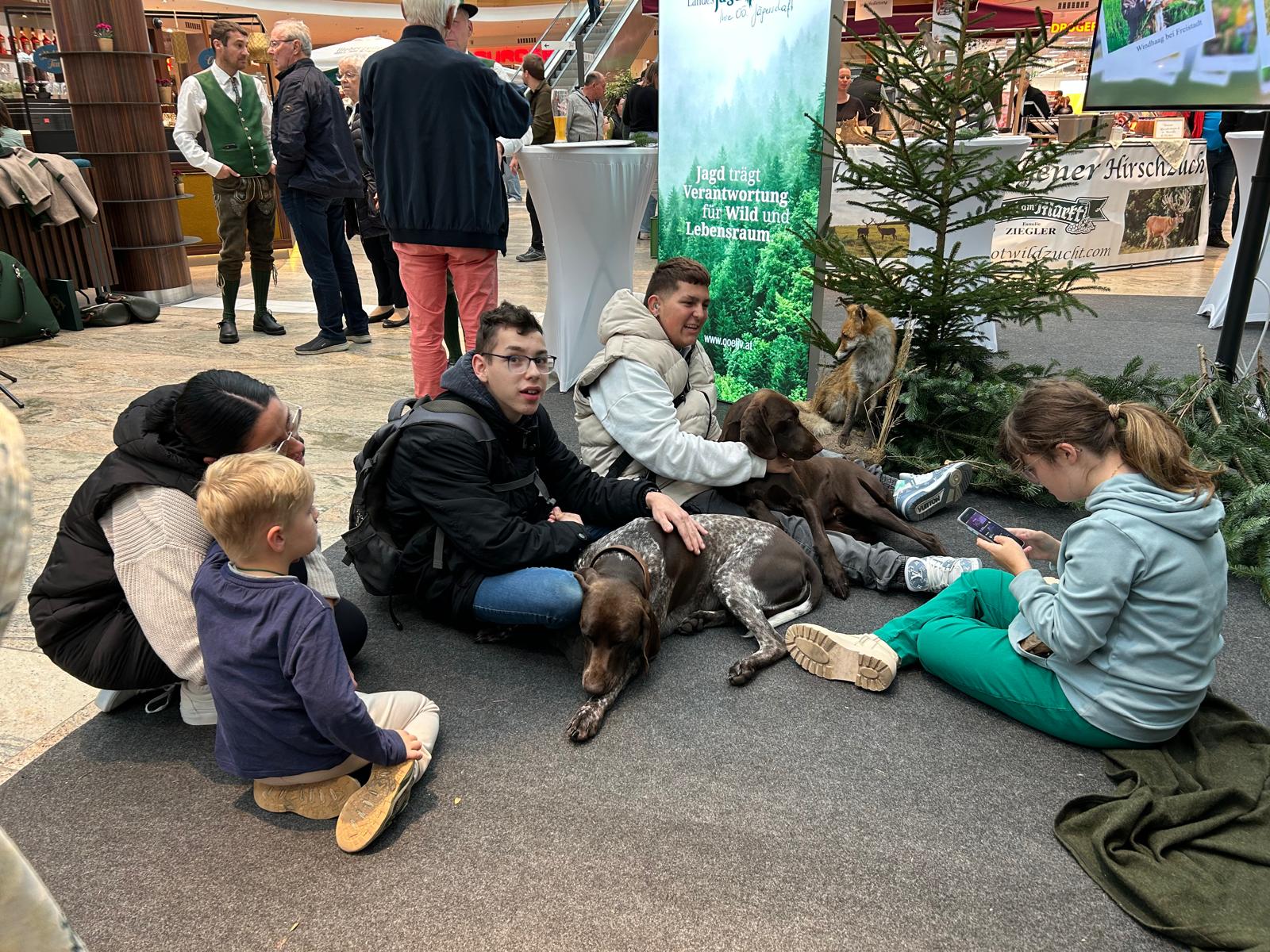 Ein Highlight gleich beim Eintritt: ein großes Wildtier-Diorama mit naturgetreu präparierten Tieren zog zahlreiche Besucherinnen und Besucher an und vermittelte einen lebendigen Eindruck von der heimischen Wildtierwelt. Fachkundige Erklärungen sorgten dafür, dass nicht nur gestaunt, sondern auch gelernt wurde. Ergänzt wurde das Angebot durch eine beeindruckende Falkner-Präsentation, bei der Greifvögel aus nächster Nähe bestaunt werden konnten. Für Kinder und Erwachsene gleichermaßen faszinierend war der direkte Kontakt zu den verschiedenen Jagdhunderassen, die nicht nur vorgestellt, sondern auch gestreichelt werden durften. Ein Waldpädagoge informierte über den Lebensraum Wald und seine Bedeutung, während Jungjägerinnen und Jungjäger an einem eigenen Stand über den Weg zur Jagdprüfung sowie über die Aufgaben und Leistungen der Jagd Auskunft gaben. Auch die Berufsjäger stellten ihren Beruf und Alltag vor.