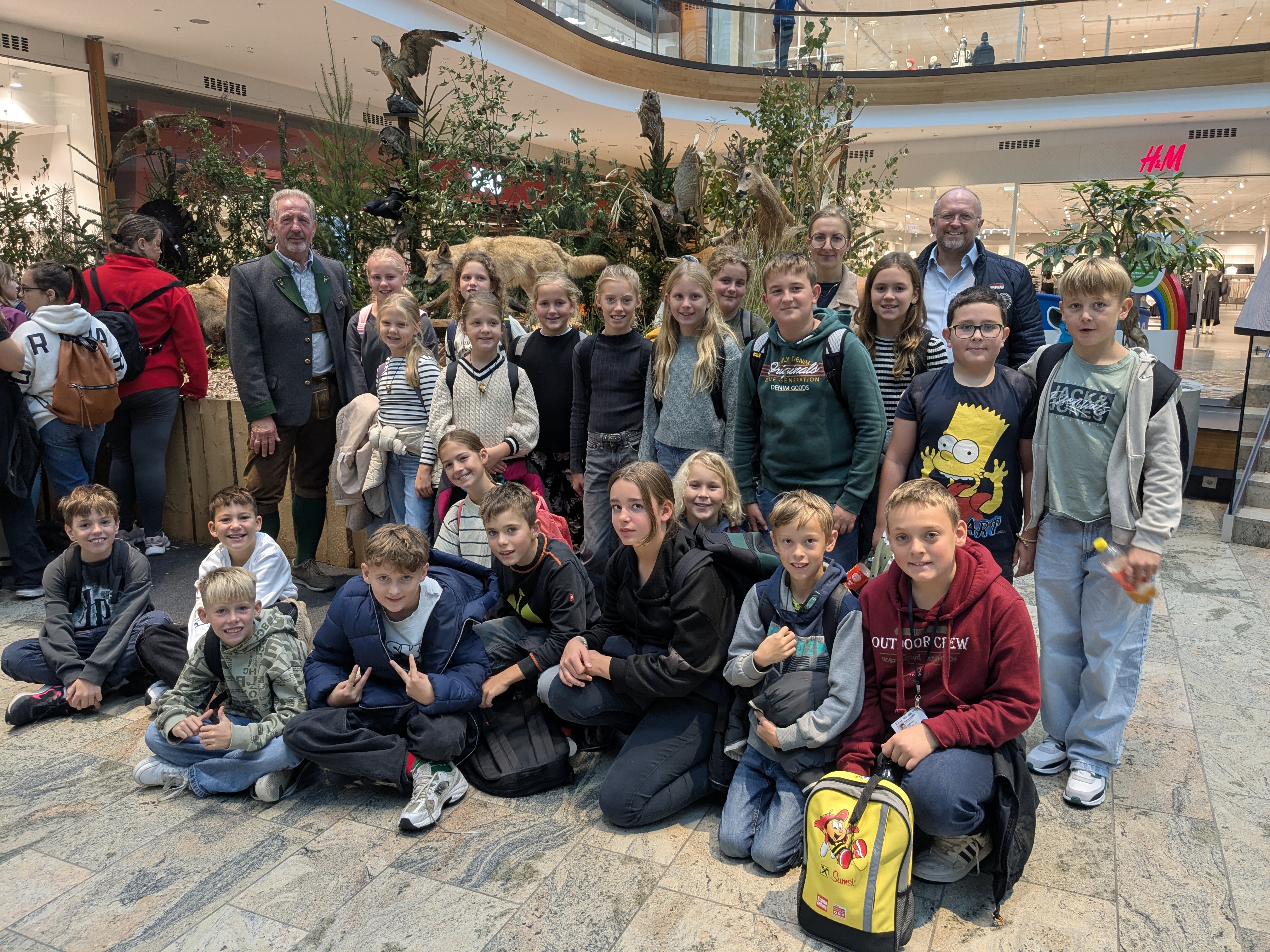 Am Freitagvormittag nutzten mehrere Schulklassen das Angebot von geführten Rundgängen durch die verschiedenen Stationen. Bei der Aktion „Schule und Jagd“ waren die Kinder mit Begeisterung dabei und stellten viele Fragen.
