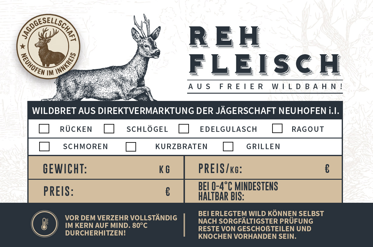 Im Zuge der diesjährigen, turnusmäßigen Jagdvergabe hat der neu formierte Vorstand der Jagdgesellschaft Neuhofen beschlossen, die Wildbret-Vermarktung strukturell und qualitativ weiterzuentwickeln.