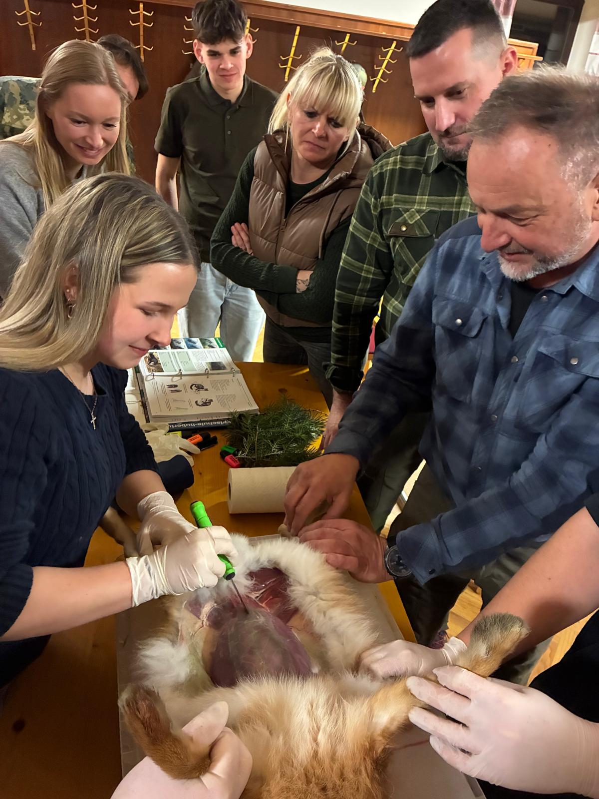 Dabei wird neben der Theorievermittlung besonders viel Wert auf die praktische Ausbildung gelegt. Das Zerwirken eines Hasen stand bereits am Programm.