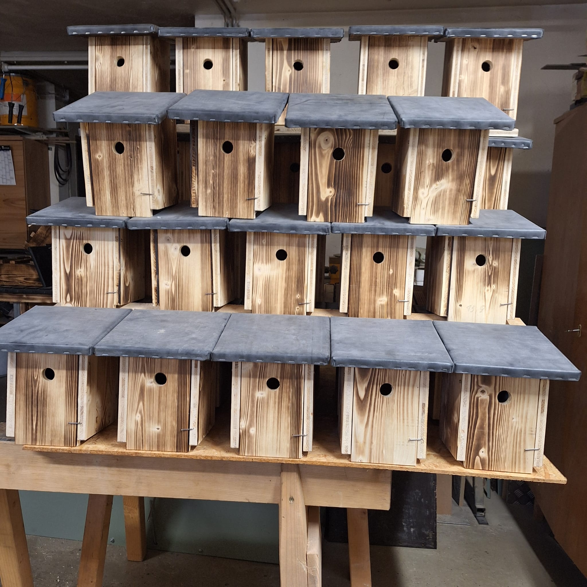 Die JHBG Pfarrkirchen hat auch heuer wieder eine Nistkastenaktion gestartet. Einige Mitglieder der JHBG fertigten ca. 60 Nistkästen aus 19mm starken Fichenholz-3Schichtplatten, die Holzoberfläche wurde anschl. geflämmt und das Dach mit einer UV-beständigen Folie versehen. Die alljährliche Frühjahr-Säuberung ist auf Grund der entriegelbaren Vorderseite denkbar einfach.