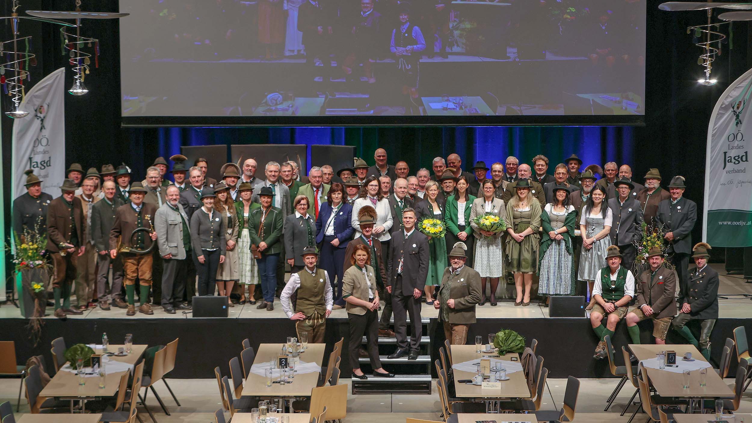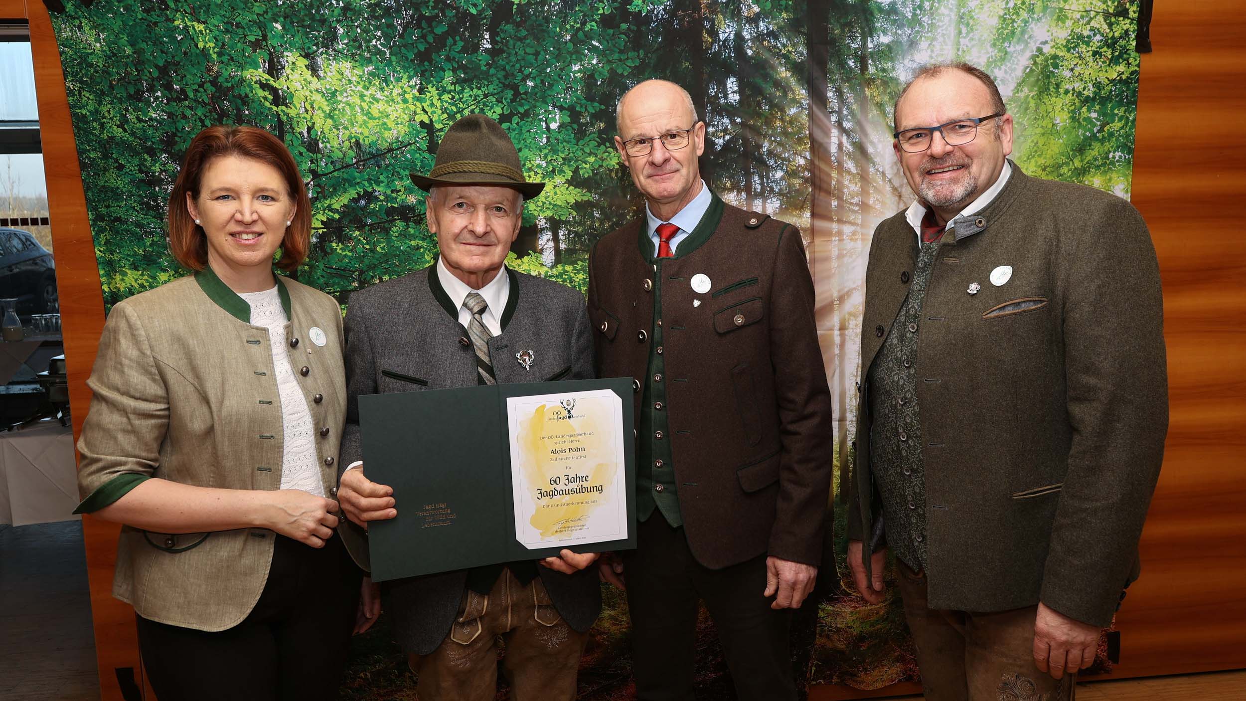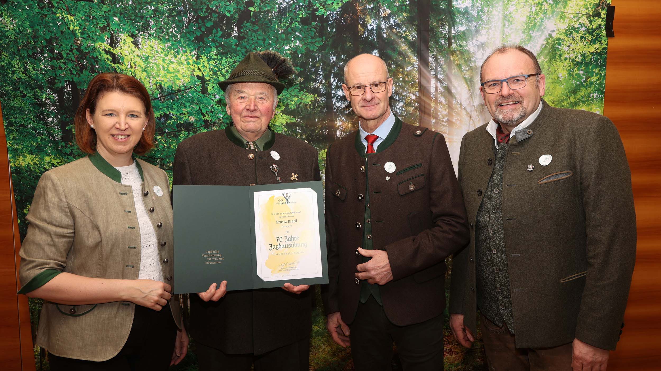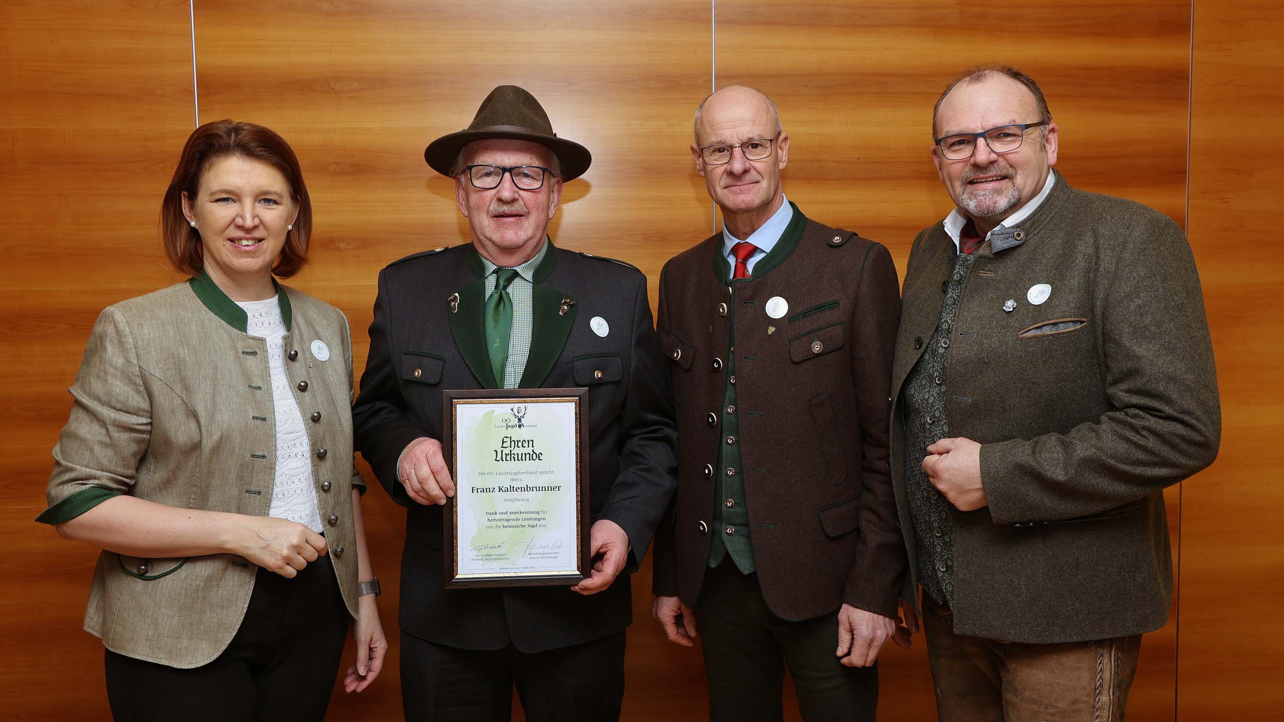 Im Rahmen des Bezirksjägertages wurden auch verdiente Jägerinnen und Jäger für ihr langjähriges Engagement ausgezeichnet. Verliehen an 32 Jäger des Bezirkes Vöcklabruck wurden unter anderem der Goldene Bruch für 50-jähriges Ausüben der Jagd, Ehrungen für 60 und 70 Jahre Mitgliedschaft in der Jägerschaft, Ehrenurkunden sowie Auszeichnungen wie die Raubwildnadel und Jagdhornbläserabzeichen.