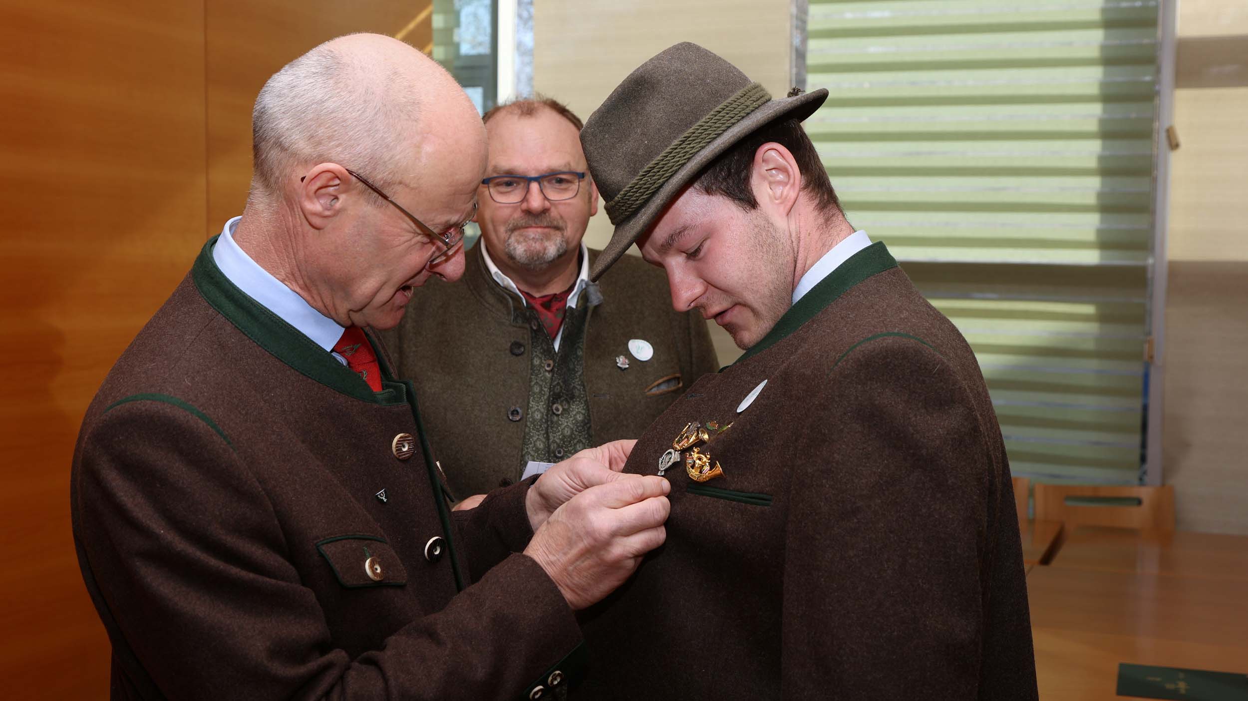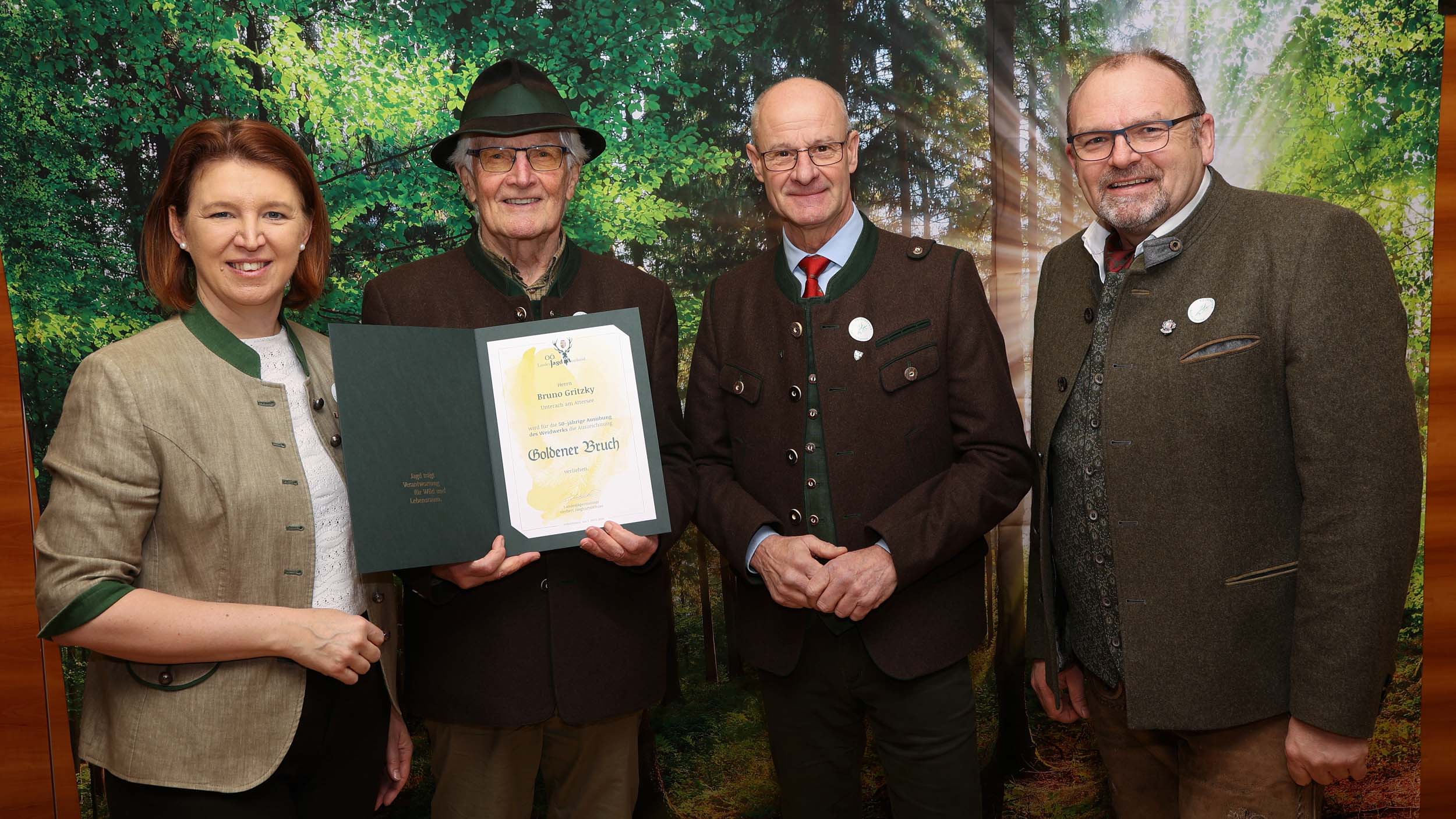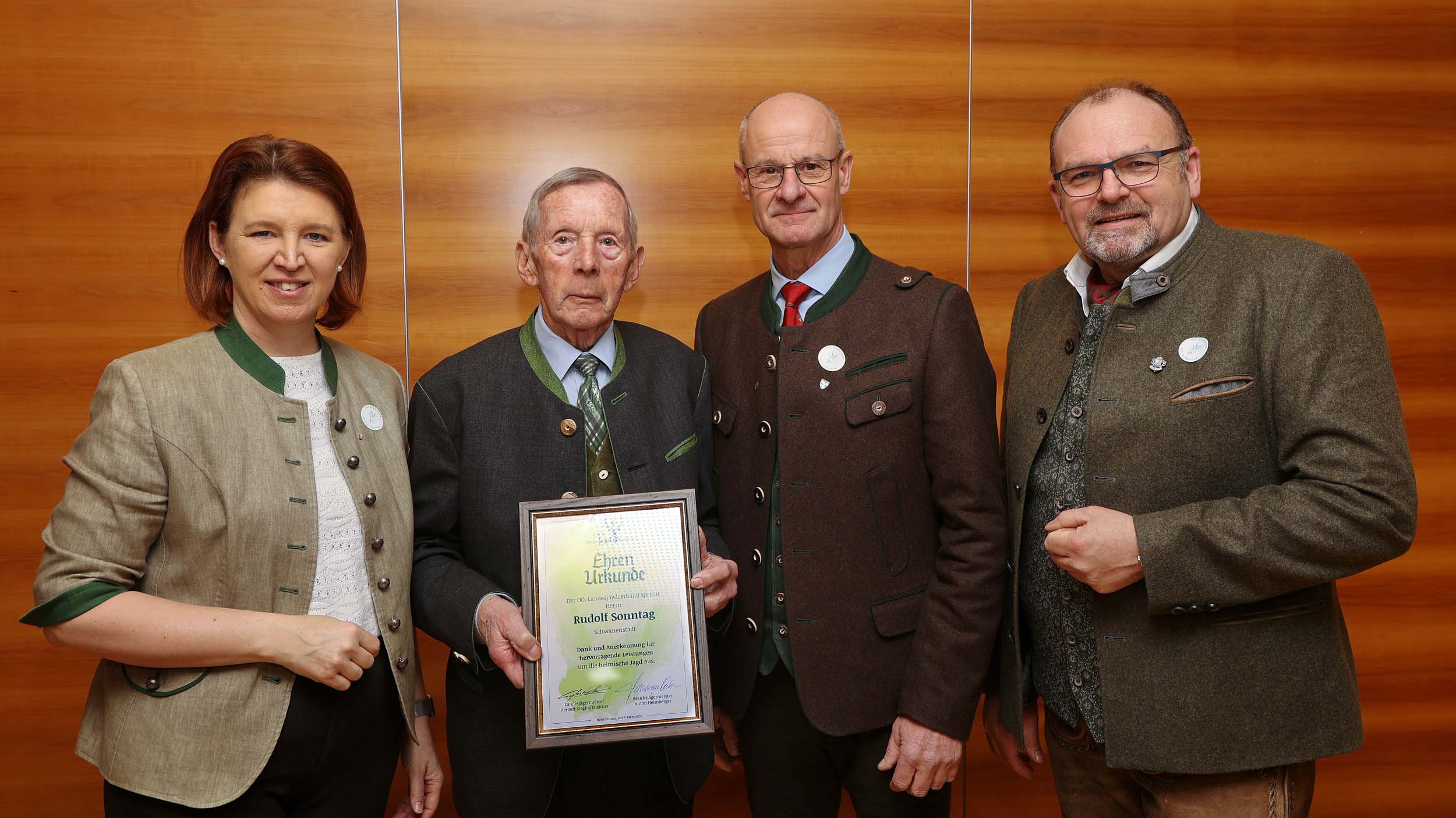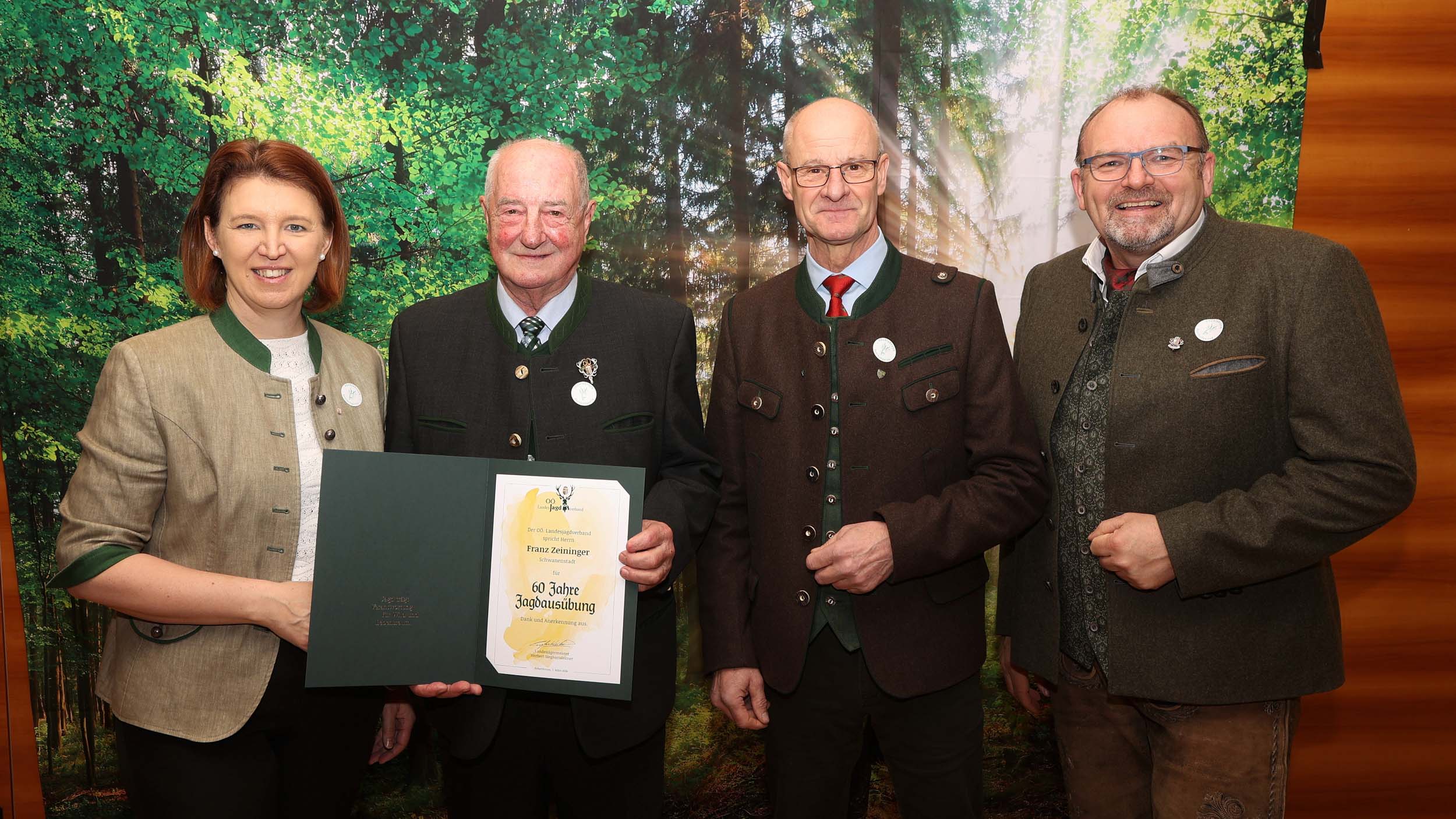 Im Rahmen des Bezirksjägertages wurden auch verdiente Jägerinnen und Jäger für ihr langjähriges Engagement ausgezeichnet. Verliehen an 32 Jäger des Bezirkes Vöcklabruck wurden unter anderem der Goldene Bruch für 50-jähriges Ausüben der Jagd, Ehrungen für 60 und 70 Jahre Mitgliedschaft in der Jägerschaft, Ehrenurkunden sowie Auszeichnungen wie die Raubwildnadel und Jagdhornbläserabzeichen.