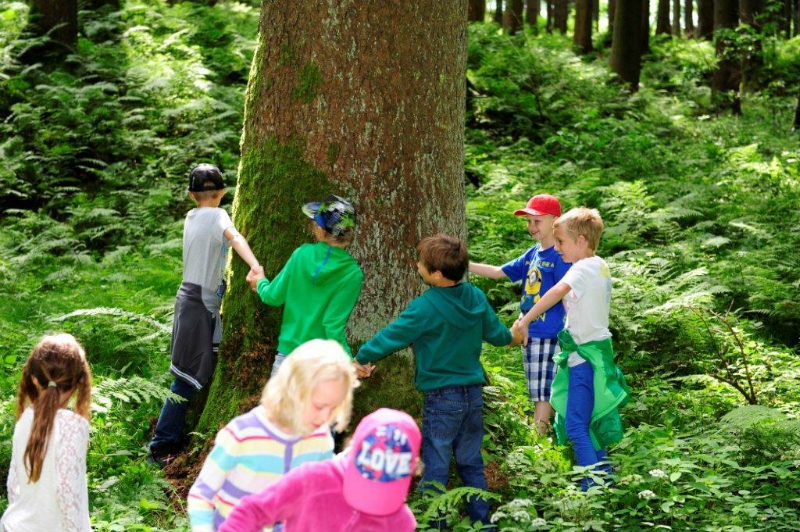 Der Förster besuchte die größte Fichte des Waldes, um den Einfluss von Licht, Schatten und Nährstoffen zu erforschen. Laubfrösche, Erdkröten, Spinnen, Früchte und Pflanzen des Waldes zuzuordnen stießen dennoch auf Hindernisse, die von Ing. Christian Brunner mit vielen  verständlichen Worten erklärt wurden.